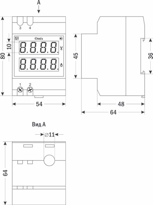 Цифровой вольтамперметр на DIN-рейку Omix D3-AV2-1 предназначен для измерения силы переменного тока и напряжения, подаваемых на измерительные клеммы прибора