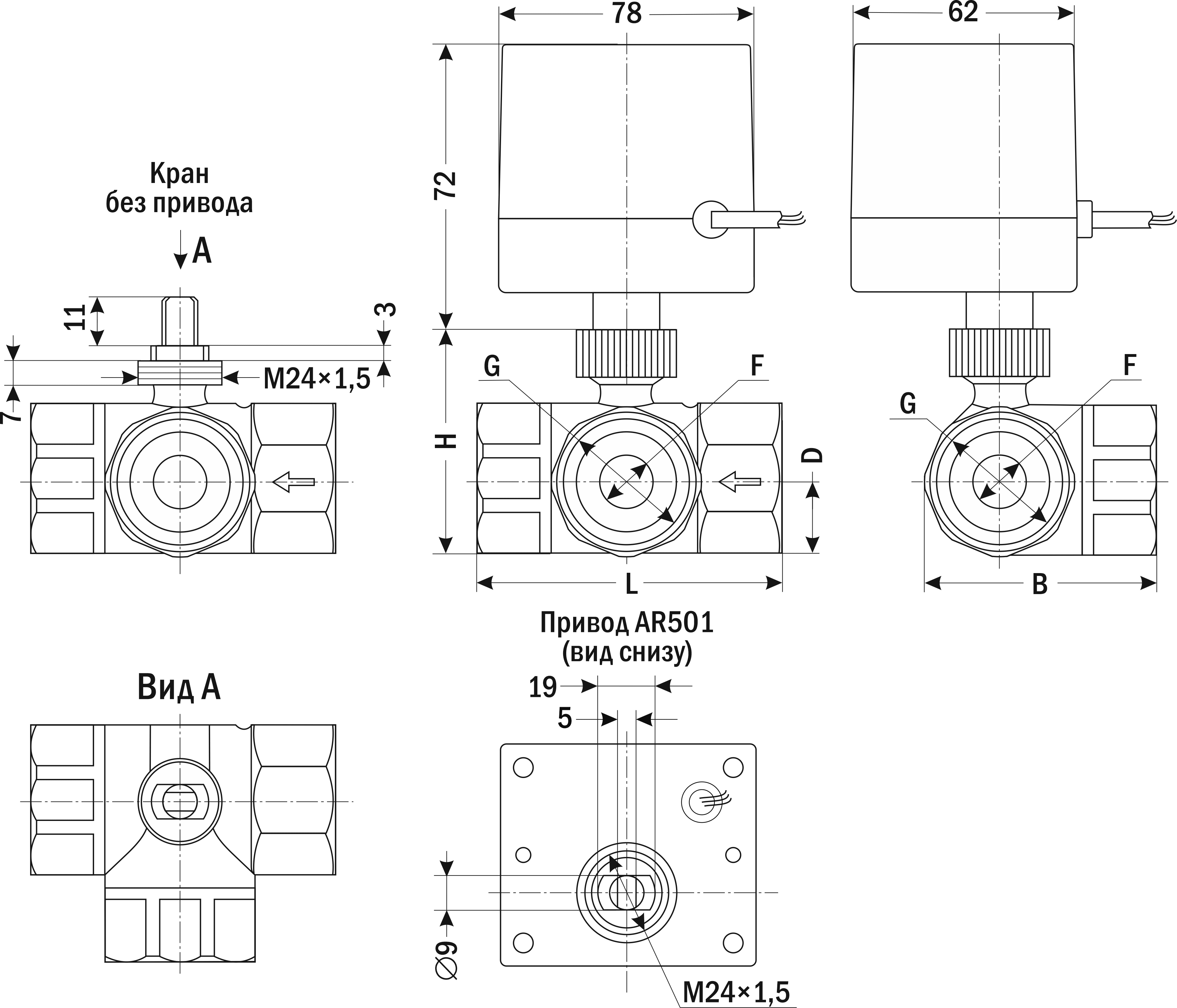 | Присоединение привода к крану | М24×1,5 |