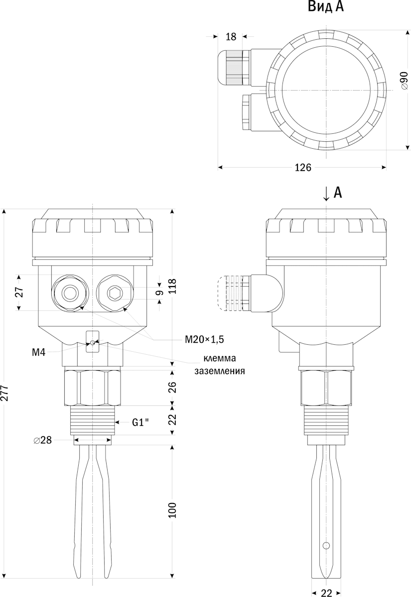 Принцип действия: Вибрационный датчик уровня размещается на емкости (сверху или сбоку) на требуемой для выполнения измерений высоте.